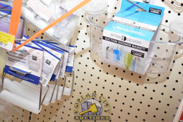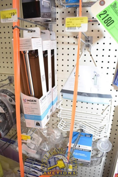 LOT OF BATHROOM ACCESSORIES INCLUDING SHOWER CADDY, 16" ASSIST BAR, 9" DESIGNER HAND GRIP, TOILET TISSUE HOLDER, ETC.