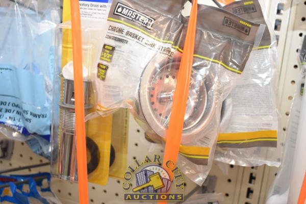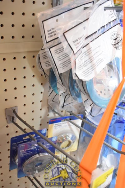 LOT CONSISTING OF CHROME DRAIN BASKETS, SINK STRAINERS, FLOOR AND CEILING PLATES