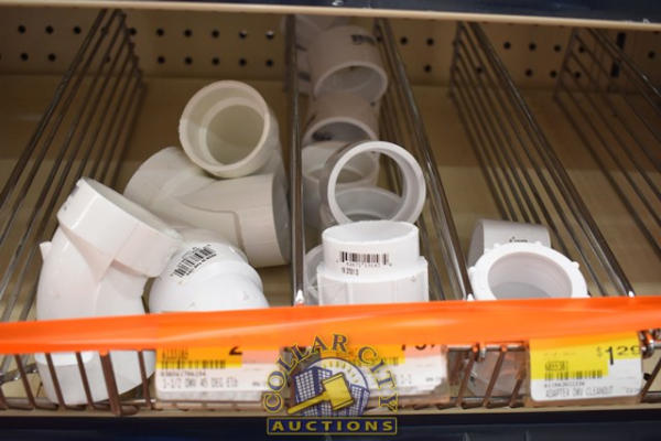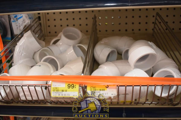 SHELF LOT OF PVC FITTINGS, MOST APPEAR TO BE 1 1/2"