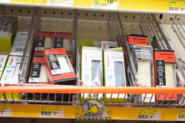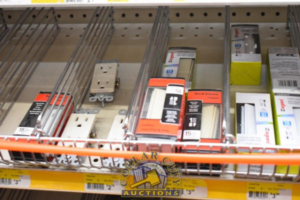 SHELF LOT OF ELECTRICAL OUTLETS AND SWITCHES