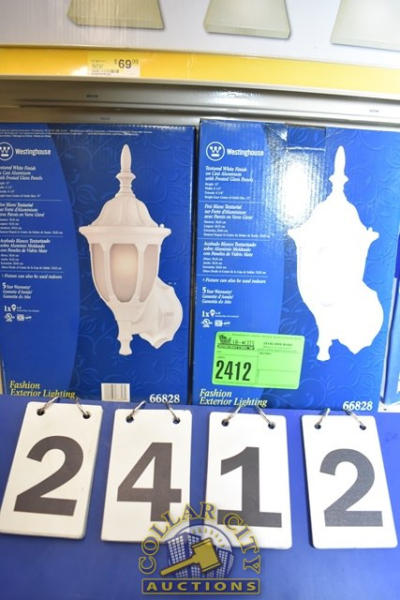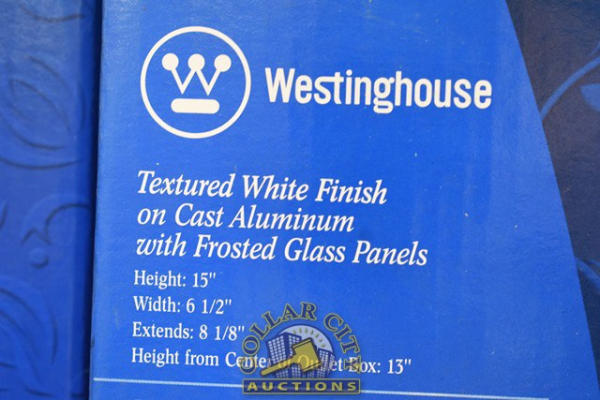 LOT OF 2 WESTINGHOUSE EXTERIOR TEXTURED WHITE FINISHED CAST ALUMINUM LIGHT FIXTURES