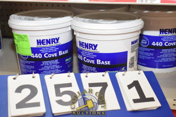LOT OF 4 1-GALLON PAILS OF HENRY'S 440 COVE BASE ADHESIVE