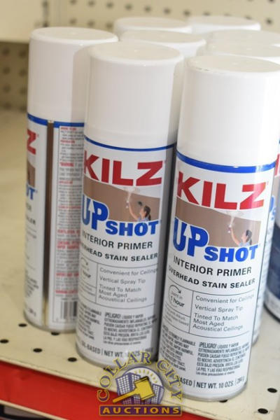 SHELF LOT OF INTERIOR KILZ PRIMER AND 4 QTS OF TINTABLE BASE