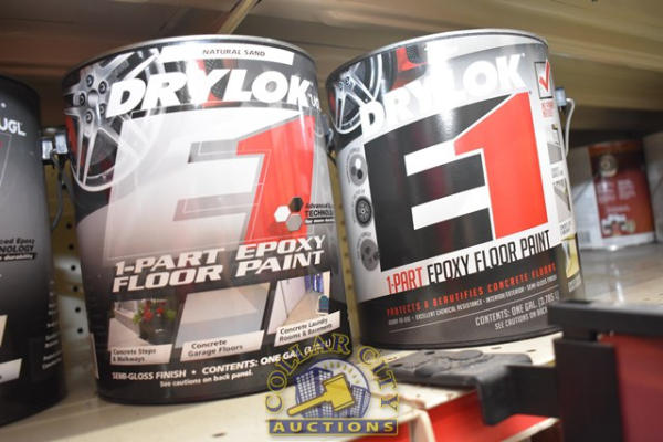 LOT OF 2 DRY LOK E1, 1-PART EPOXY FLOOR PAINT, 1 IS NATURAL SAND, 1 IS GRAY