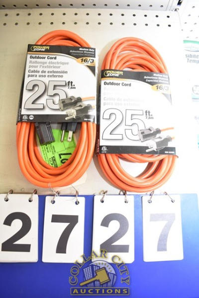 LOT OF 2 OUTDOOR 25' EXTENSION CORDS