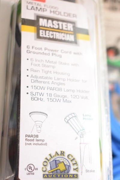 LOT OF 4 METAL FLOOD LAMP HOLDERS WITH 6' POWER CORDS
