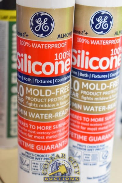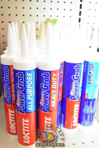LOT OF 32 TUBES LOCTITE POWER GRAB HEAVY DUTY CONSTRUCTION ADHESIVE AND 2 TUBES OF GE SILICONE