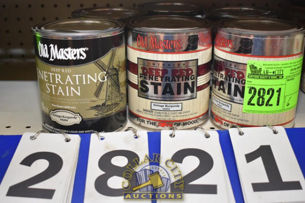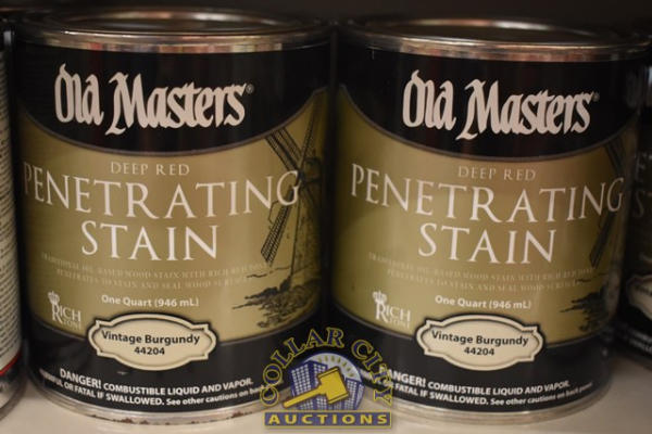 LOT OF 6 QTS OF OLD MASTER DEEP RED PENETRATING STAIN