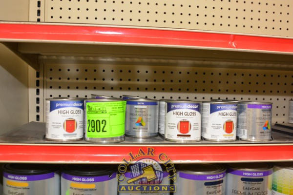 LOT OF 13 8 OZ CONTAINERS OF PREMIUM DÉCOR ASSORTED COLOR PAINTS, ALSO INCLUDES 13 8 OZ CONTAINERS OF XO RUST PROFESSIONAL DIRECT TO METAL AND OIL BASED ENAMEL PAINTS