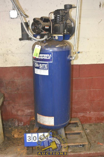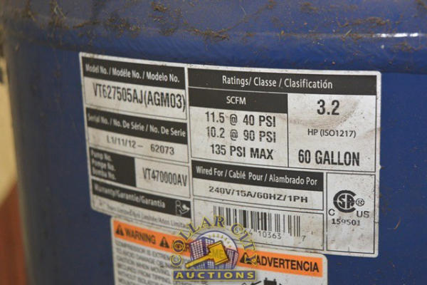 CAMPBELL HAUSFELD VERTICAL 60 GAL AIR COMPRESSOR, 230 VOLTS, SINGLE PHASE