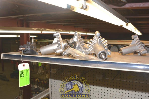 SHELF LOT OF WHAT APPEARS TO BE MOSTLY MOWING DECK SPINDLES