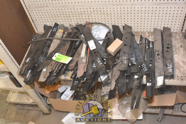 SHELF LOT OF MOWER BLADES