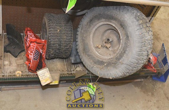 SHELF LOT OF TIRES AND ASSORTED TUBES