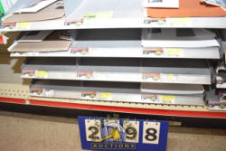 PEGBOARD HOOK STYLE SANDPAPER RACKS AND ALSO INCLUDES BLACK SHELVES AND CONSTRUCTION ADHESIVE RACKS (CANNOT BE REMOVED UNTIL AFTER REGULAR SCHEDULED REMOVAL)