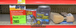 BOX OF DIRT-X CLEANER, 1 ROLL OF FLEX TAPE, 1 BOTTLE OF THROUGH THE ROOF
