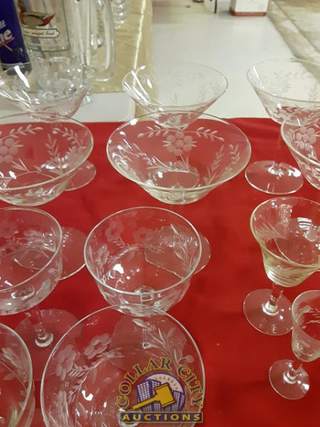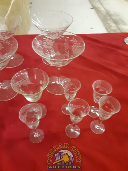 22 Pieces of Beautiful Etched glassware