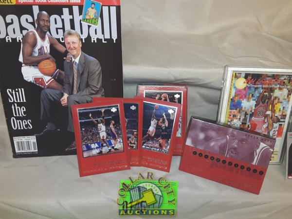 Michael Jordon Lot including card set, book, magazine and picture