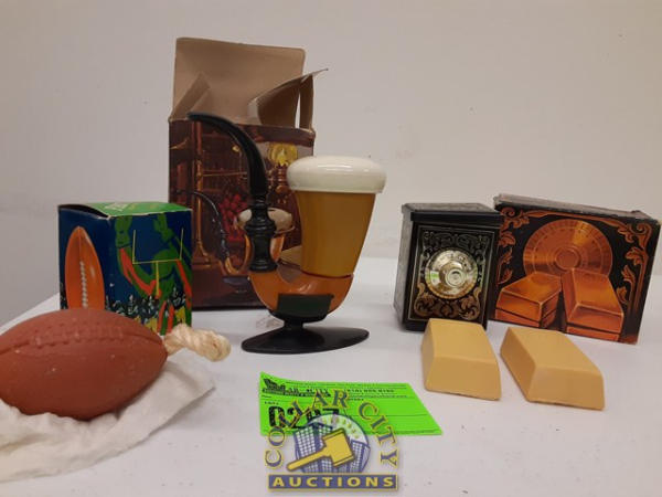 Lot of 5 Old Avon soaps and a bank