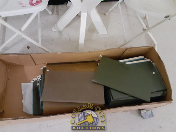 old small table and 2 chairs with 50 XL file cabinets sleeves