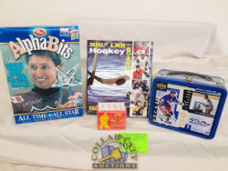 4 Empty Box of Alphabets cereal NHF, Sticker album, Lunch box and 1990 NHL traders cards