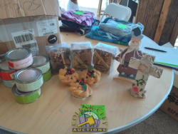 Lot of 15 scented boxed arrangements, tins of notes, scented apple pics & Misc. decorations.