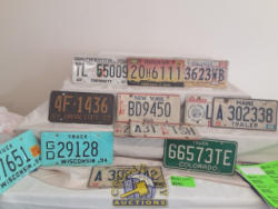 50 +/- Old license plates including a 1957 NY Empire State Plate