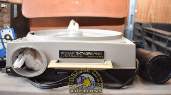 Kodak Ektagraphic Slide Projector, Model AF-2, in Carrying Case with Spare Projection Lens, 102 - 152mm (We do not guarantee the working condition or completeness of any of these items.)