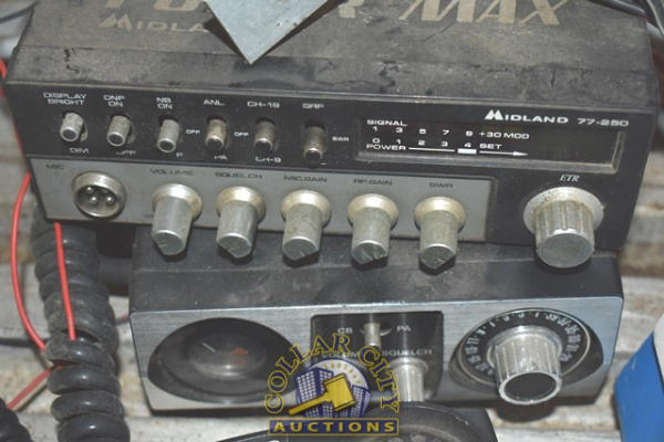 Midland Power Max 77-250 and a Kraco Class D Citizen's Band Transceiver and various Microphones (We do not guarantee the working condition or completeness of any of these items.)