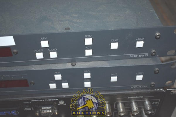 Kramer 5X5 Video/Audio Matrix Switcher, a Kramer 4X4 VGA/XGA Audio Matrix Switcher, and a Leitch Audio Video Hub (We do not guarantee the working condition or completeness of any of these items.)