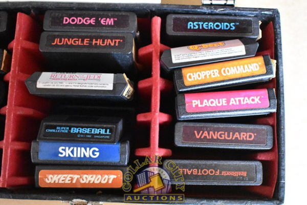 #224 – Lot of various, mostly Atari Video Computer System Games including Asteroids, Skeet Shoot, Sea Quest, Bowling, Etc. Also includes Parker Brothers Games including Star Wars Return of the Jedi, Death Star Battle. All games are in a case. (We do not guarantee the working condition or completeness of any of these items.)