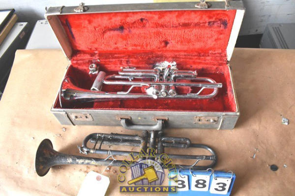 Believed to be a Brescher Trumpet and a Trumpet in a Case (We do not guarantee the working condition or completeness of any of these items.)
