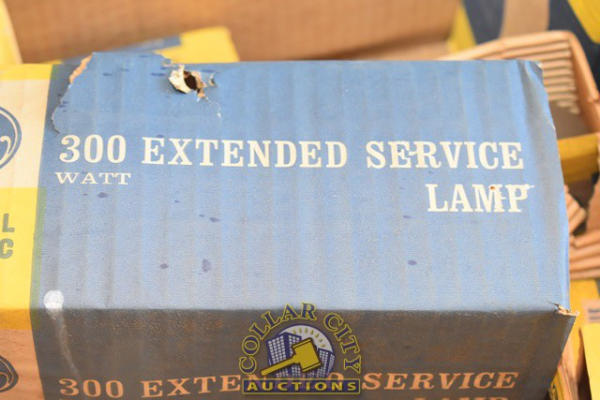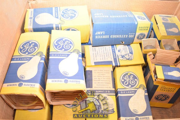Lot of vintage GE Lamps include 300 Extended Service Lamp, Inside Frosted Lamps, etc. (We do not guarantee the working condition or completeness of any of these items.)