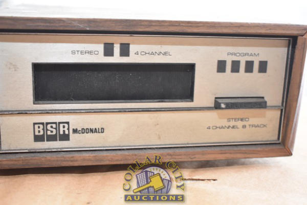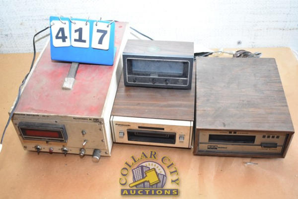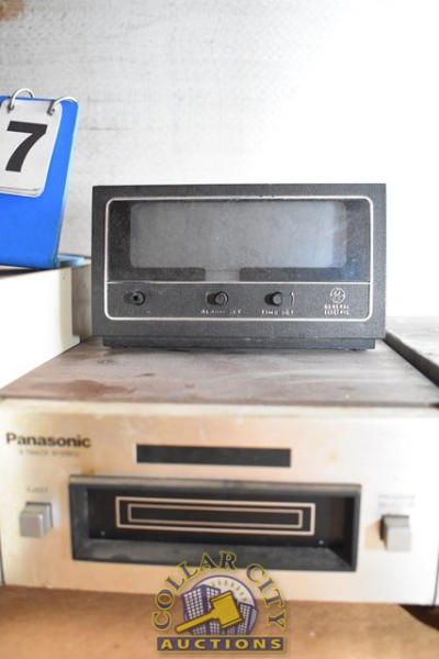 Lot includes a Panasonic 8-Track Stereo, General Electric Alarm Clock, a BSR McDonald Stereo 4-Channel 8 Track, and a BLH Electronics Transducer Indicator Model 450A (We do not guarantee the working condition or completeness of any of these items.)