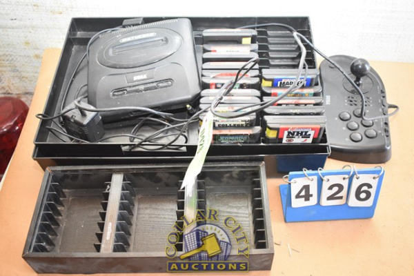 Lot includes a Sega Genesis, Multiple Games, a Sega 6-Button Arcade Stick (We do not guarantee the working condition or completeness of any of these items.)
