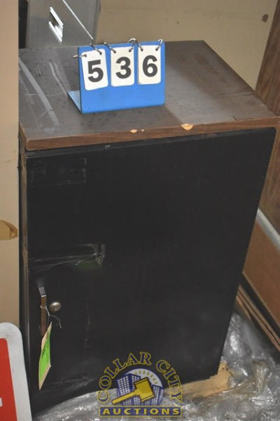 Approx. 18" x 28" Wood Topped Metal Cabinet (We do not guarantee the working condition or completeness of any of these items.)