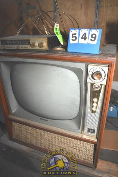 Vintage Air Line TV, approx. 26" with Realistic TV-100 Stereo TV Receiver and Silvertone Color Control Rabbit Ears (We do not guarantee the working condition or completeness of any of these items.)