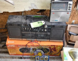 JVC Sirius Boom Box, a General Electric 4-Speaker System, Wards Airline 5-Band Radio (We do not guarantee the working condition or completeness of any of these items.)