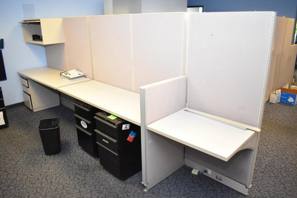 4-unit office set up includes 2 cabinets per bay, approx. 110" x 138" total