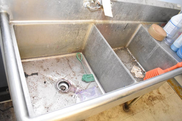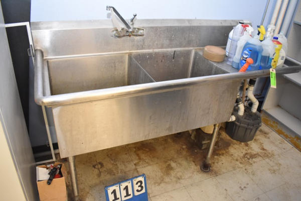 2-bay stainless steel sink (CUSTOMER IS RESPONSIBLE FOR REMOVAL, DISCONNECTING AND CAP PLUMBING. CERTIFICATE OF INSURANCE IS REQUIRED.)