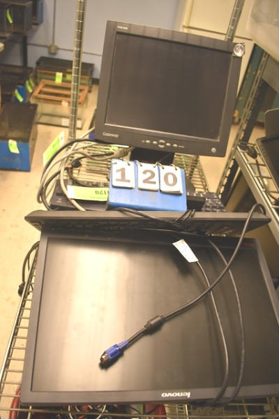 Shelf lot consisting of 2 monitors, 2 keyboards and various cords