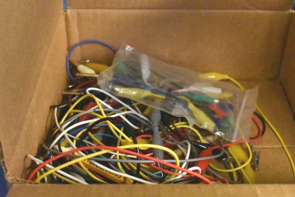 Shelf lot of assorted K'nex pieces, electrical testers and tote of electrical items