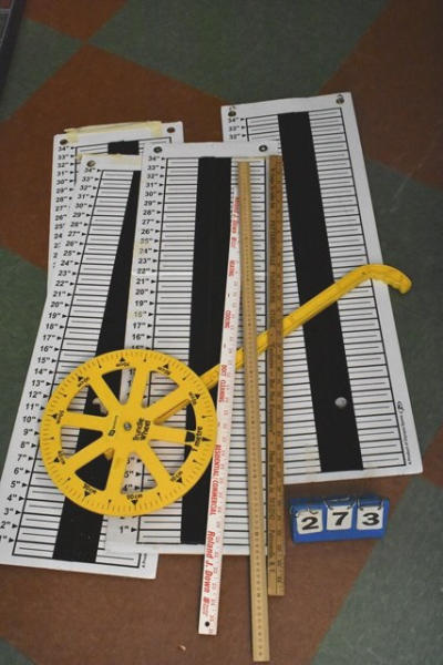Vinyl measuring board with measuring sticks