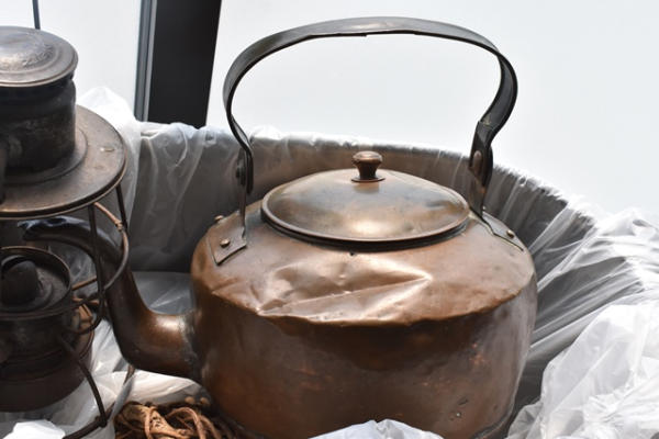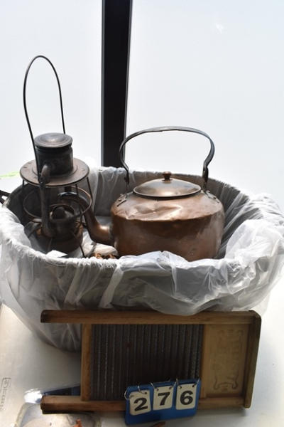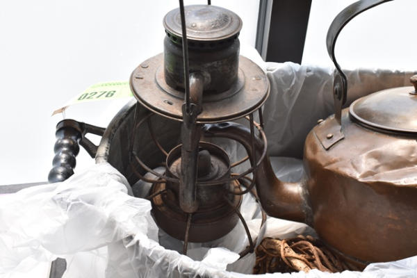 Lot of vintage teapot and oil lamp