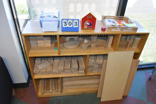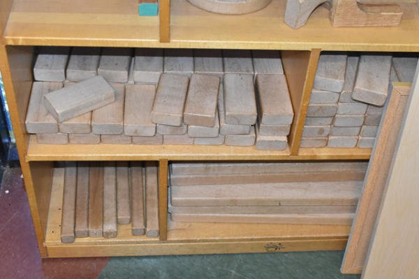 Wooden bookshelf with wood contents
