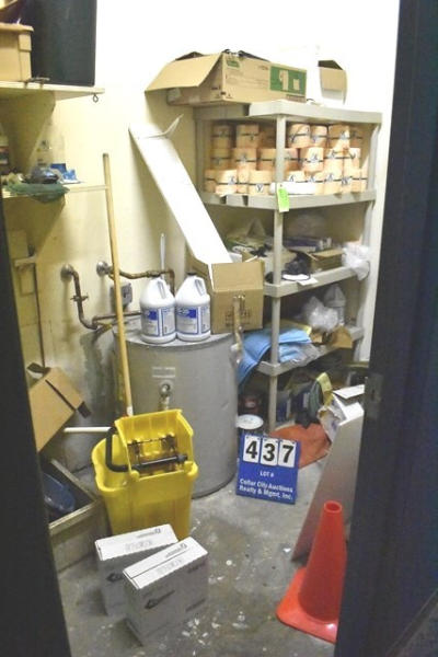 Closet lot consisting of assorted cleaners, toilet paper, etc.