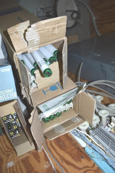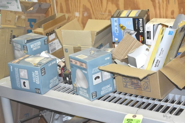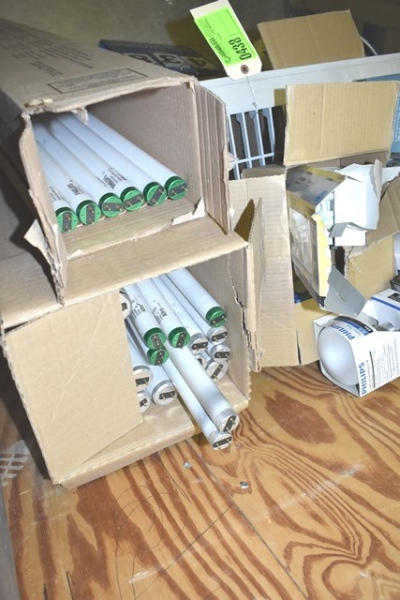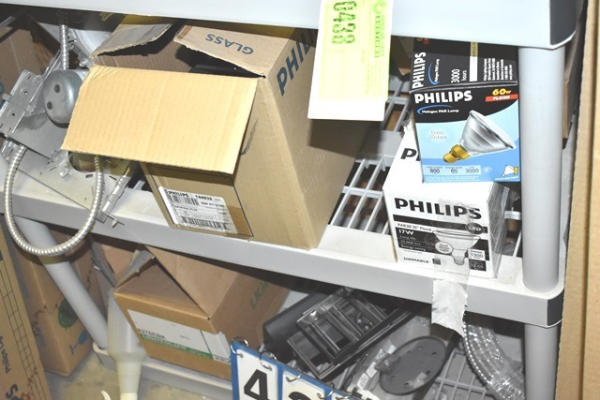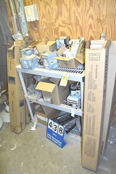 Shelf lot with plastic shelf consisting of assorted sized light bulbs