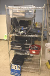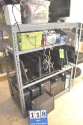 Shelf lots consisting of monitors, assorted wires and hardware (DOES NOT COME WITH ANY TOWERS)