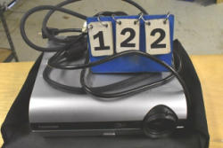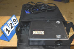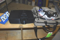 Shelf lot consisting of an Epson projector with 2 bags and tote of assorted wires, etc.