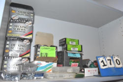 Shelf lot of assorted paint rollers, Great Land Outdoors, lead cords, etc.