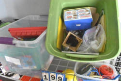Shelf lot of assorted children's educational toys and Clear View Base 10 starter set